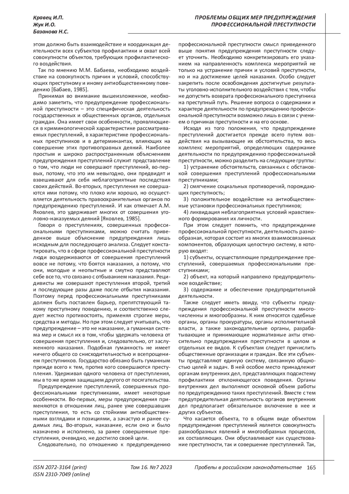 10. 	Кравец И.П., (2022), Проблемы специальных мер предупреждения профессиональной преступности. Пробелы в российском законодательстве. 2022. Т.15. №2. с. 134-143. EDN: PZUKUF
