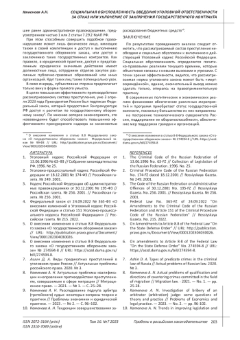 8. 	Каменева А. Н. Актуальные проблемы квалификации и направления противодействия преступлениям, совершаемым в сфере миграции // Миграционное право. - 2021. - № 1. - С. 25-28. EDN: VDOAMM