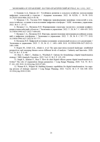 8. 	Неганова В.П. Цифровой потенциал компании: комплексный подход к его реализации // Экономика и управление. 2023. Т. 29, № 12. С. 1491-1498.  DOI: 10.35854/1998-1627-2023-12-1491-1498  EDN: HOMXRA