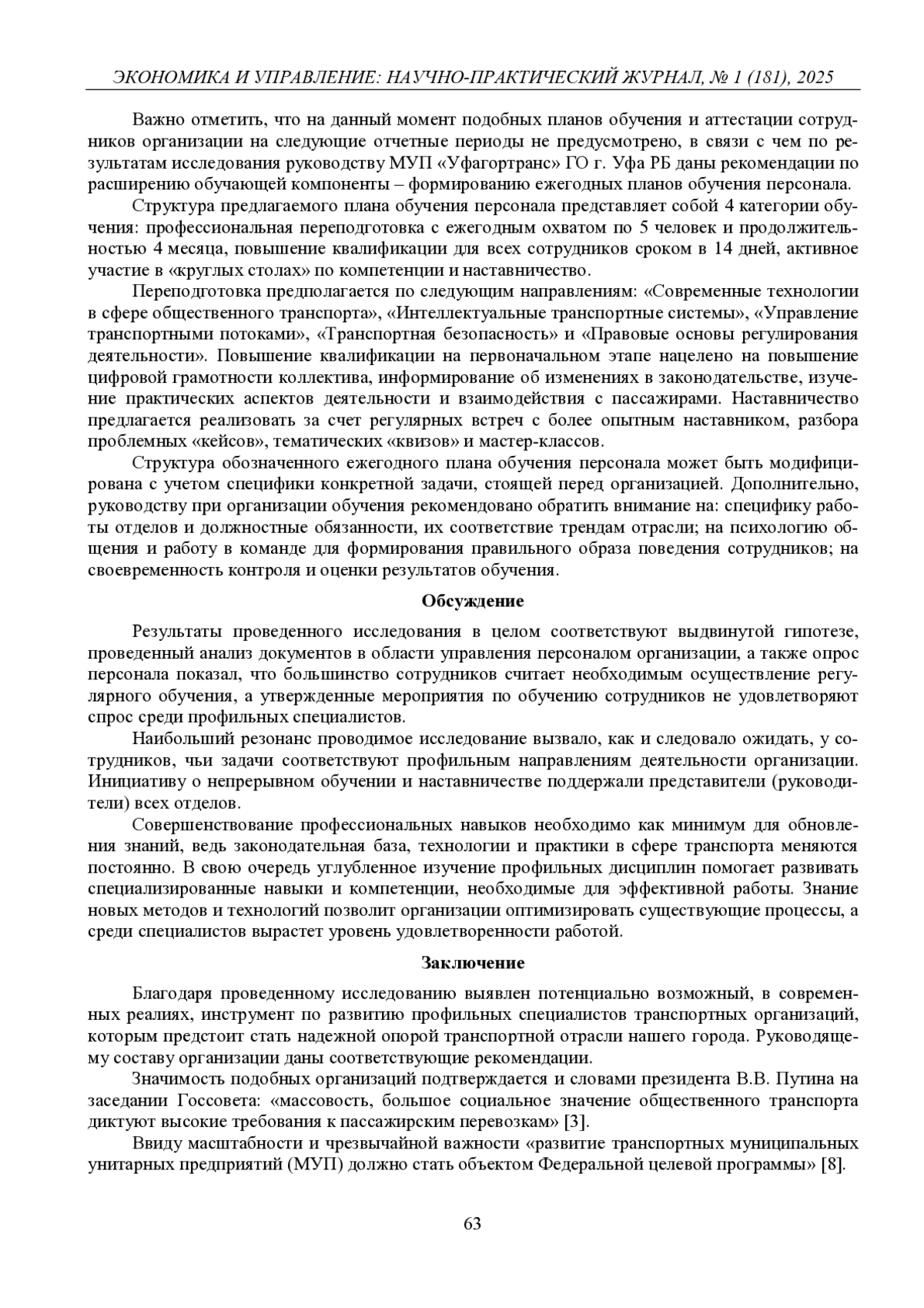 В статье на примере МУП «Уфагортранс» ГО г. Уфа Республики Башкортостан анализируется потребность современных предприятий транспортной отрасли в обучении персонала. Выявлены основные проблемы, накопленные в данной сфере. Представлены результаты исследования потребности в обучении персонала организации, полученные в результате проведения опроса