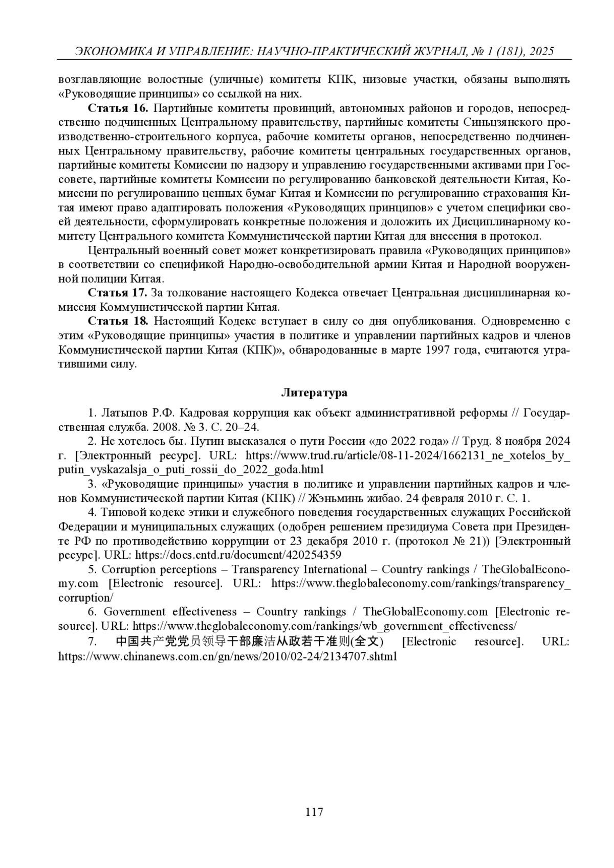1. 	Латыпов Р.Ф. Кадровая коррупция как объект административной реформы // Государственная служба. 2008. № 3. С. 20-24.  EDN: JTJYVR