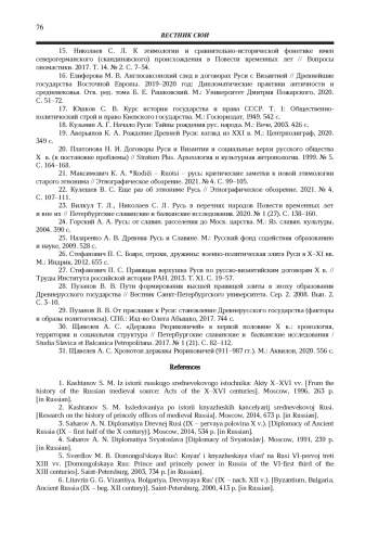 22. 	Кулешев В. С. Еще раз об этнониме Русь // Этнографическое обозрение. 2021. № 4. С. 107-111. EDN: NUTXCL