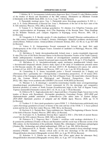 12. 	Melnikova E. The Lists of Old Norse Personal Names in the Russian-Byzantine Treaties of the Tenth Century // SAS. 2004. В. 22. Р. 5-27.