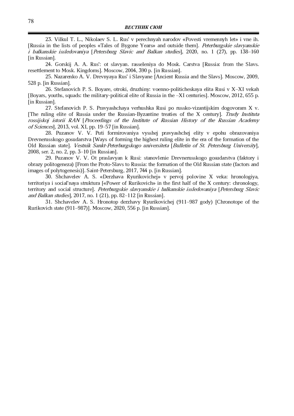 23. 	Вилкул Т. Л., Николаев С. Л. Русь в перечнях народов Повести временных лет и вне их // Studia Slavica et Balcanica Petropolitana = Петербургские славянские и балканские исследования. 2020. № 1 (27). С. 138-160. EDN: IZCOAM
