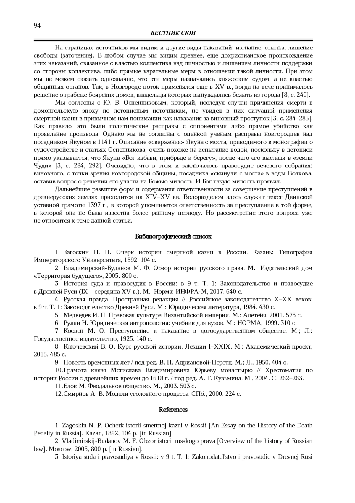 1. 	Загоскин Н. П. Очерк истории смертной казни в России. Казань: Типография Императорского Университета, 1892. 104 с.