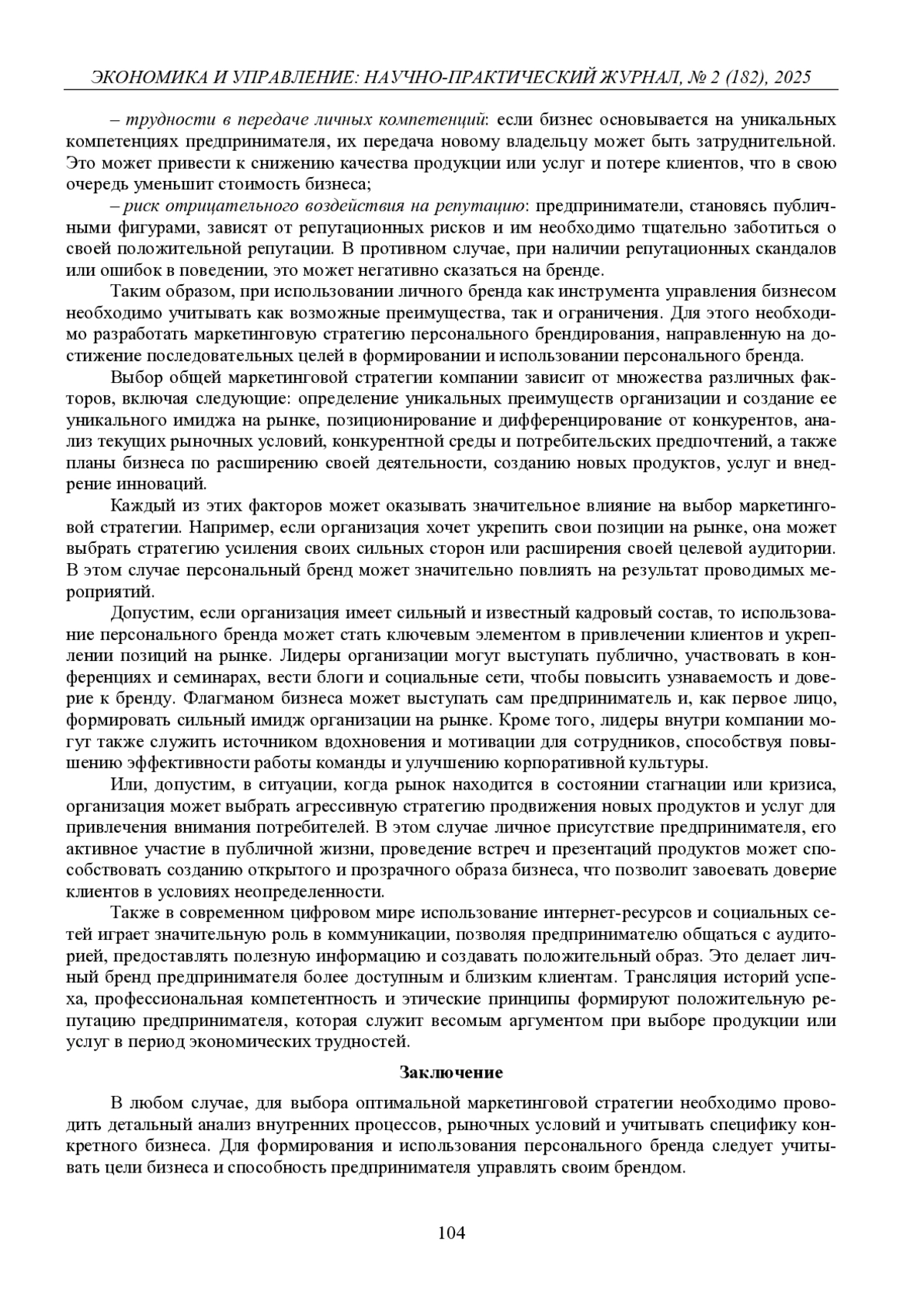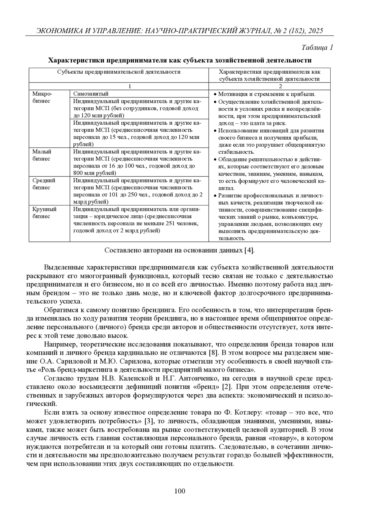 В статье рассматриваются актуальные вопросы маркетинговой стратегии создания и использования персонального бренда для предпринимателей малого и среднего бизнеса. Предпринимательство занимает важное место в современной экономике. Предприниматель выступает как субъект хозяйственной деятельности, обладающий многогранным функционалом, который тесно связан не только с его предпринимательской деятельностью, но и с личностью в целом. На сегодняшний день в научной среде отсутствует общепринятое понятие персонального бренда предпринимателя, поэтому авторы исследуют данный феномен и предлагают свое авторское определение персонального (личного) бренда. В статье приводятся практические примеры использования личного бренда в управлении бизнесом, включая преимущества и ограничения его применения. Особое внимание уделяется использованию персонального бренда с точки зрения маркетинговой стратегии