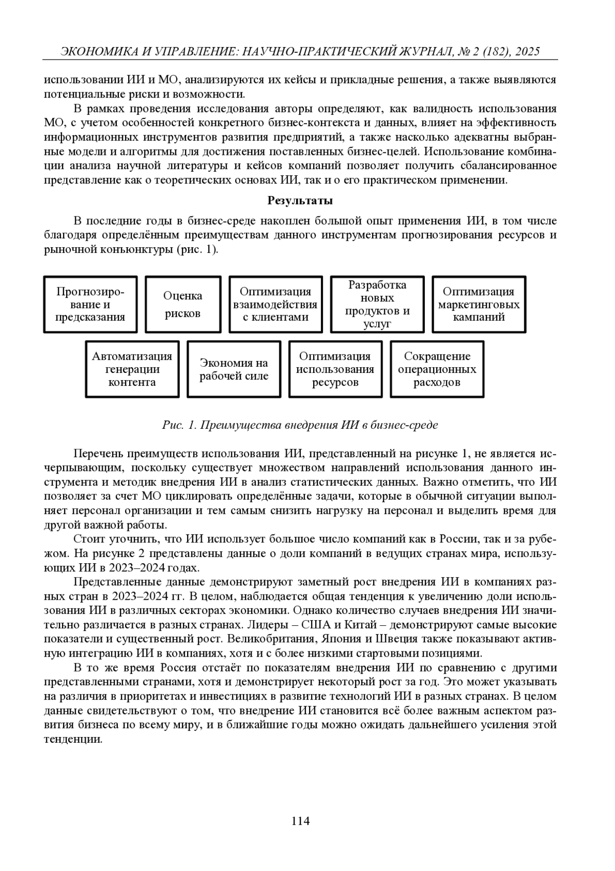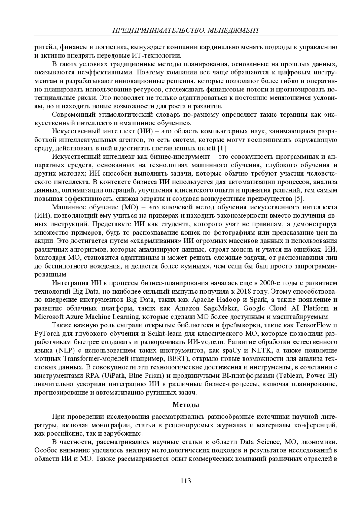 Электронная коммерция стала одним из ключевых драйверов глобальной экономики, демонстрируя устойчивый рост даже в условиях кризисов. Однако стремительное развитие отрасли сопровождается рядом вызовов: высокой конкуренцией, динамичным изменением потребительских предпочтений, оптимизацией логистических процессов. В этих условиях искусственный интеллект становится критически важным инструментом для повышения эффективности бизнес-процессов. Исследования по искусственному интеллекту в электронной коммерции остаются фрагментарными, что подтверждает актуальность данной научной работы. Целью данной статьи является анализ роли искусственного интеллекта в оптимизации бизнес-процессов электронной коммерции, выявление ключевых направлений их применения, а также разработка методических рекомендаций по его внедрению в деятельность бизнес-структур. На основе проведенного анализа предложены рекомендации по интеграции искусственного интеллекта в бизнес-процессы