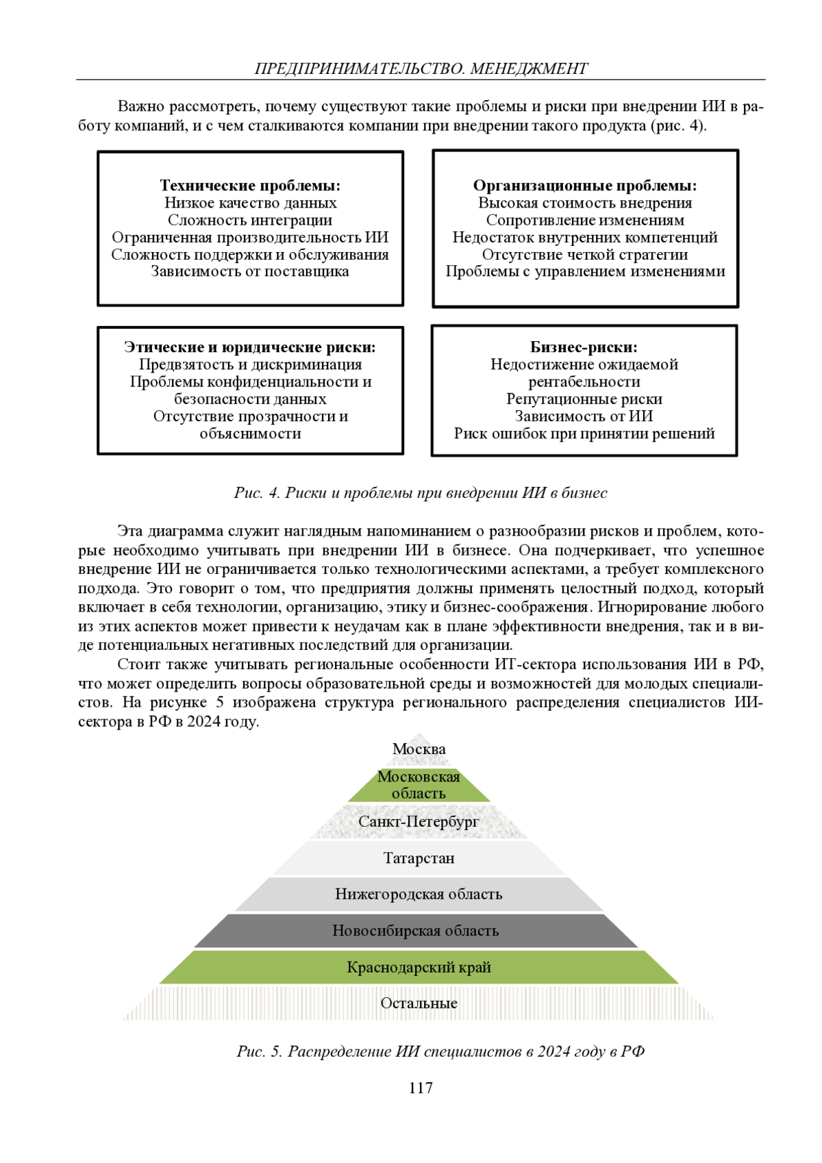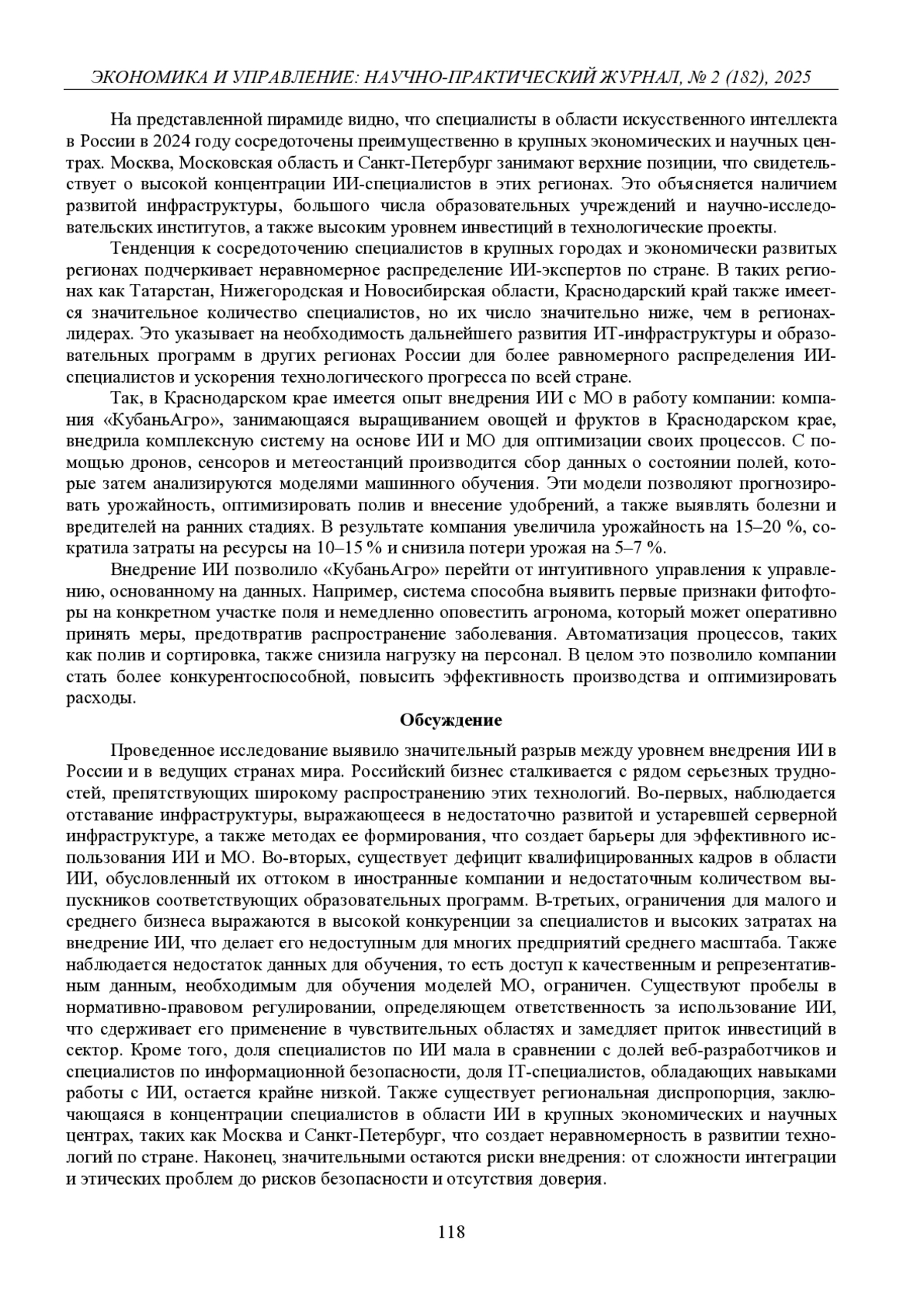 В статье представлен анализ роли искусственного интеллекта (ИИ) и машинного обучения (МО) в современных системах управления предприятиями, с акцентом на различия в их применении в регионах России и за рубежом. Исследование выявило существенное отставание российского ИТ-сектора от передовых стран в области внедрения и развития ИИ. Для оценки ситуации авторами проведен анализ ИТ-сектора РФ, рассмотрены особенности регионального распределения специалистов и инфраструктуры, а также подчеркнута необходимость создания устойчивой образовательной среды для подготовки ИИ-специалистов. Особое внимание уделяется важности обучения уже внедренных ИИ-систем и наращивания их функциональности в процессах планирования посредством машинного обучения новых поколений моделей. В статье подчеркнута критическая роль ИИ в цифровой трансформации бизнеса и необходимость активных действий для преодоления выявленных проблем в России.