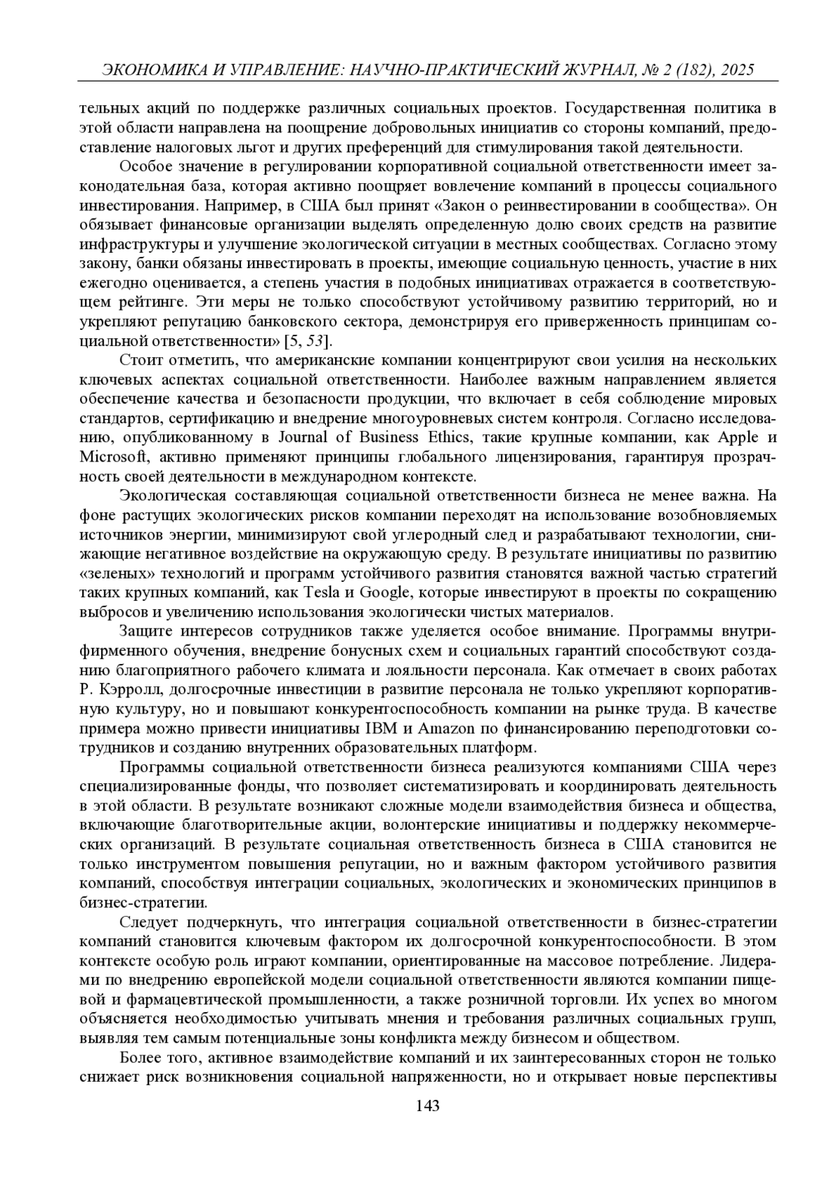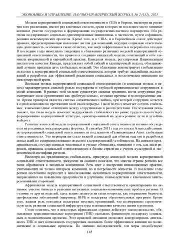 В статье рассмотрены основные модели корпоративной социальной ответственности, характерные для различных стран и обусловленные специфическими особенностями и приоритетами стран и регионов. Показано, что в странах с высокоразвитой экономикой социальные программы, финансируемые государством, обеспечивают решение многих социальных проблем, что позволяет местным компаниям сосредоточиться на более узких задачах, таких как защита окружающей среды, развитие персонала и реализация внутренних инициатив. В странах с развивающейся экономикой, где государственные программы не могут покрыть все социальные потребности, роль бизнеса в поддержке наиболее уязвимых слоев населения становится все более заметной