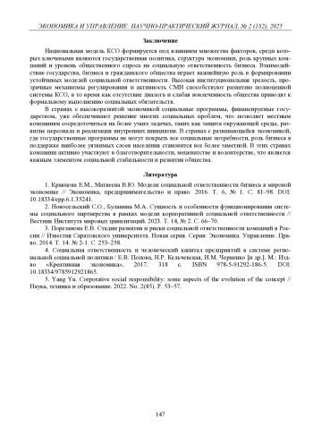 2. 	Новосельский С.О., Булавина М.А. Сущность и особенности функционирования системы социального партнерства в рамках модели корпоративной социальной ответственности // Вестник Института мировых цивилизаций. 2023. Т. 14, № 2. С. 66-70. EDN: MSOACZ
