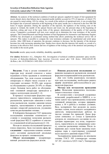 5. 	Батыров В. И., Койчев В. С., Болотоков А. Л. Зависимость параметров топливоподачи от давления в полости питания ТНВД // Научно-технический прогресс в АПК: проблемы и перспективы: сб. науч. тр. по материалам ХII Международной научно-практической конференция, в рамках XVIII Международной агропромышленной выставки “Агроуниверсал-2016”. Ставрополь, 2016. С. 252-256. EDN: VQTJCH