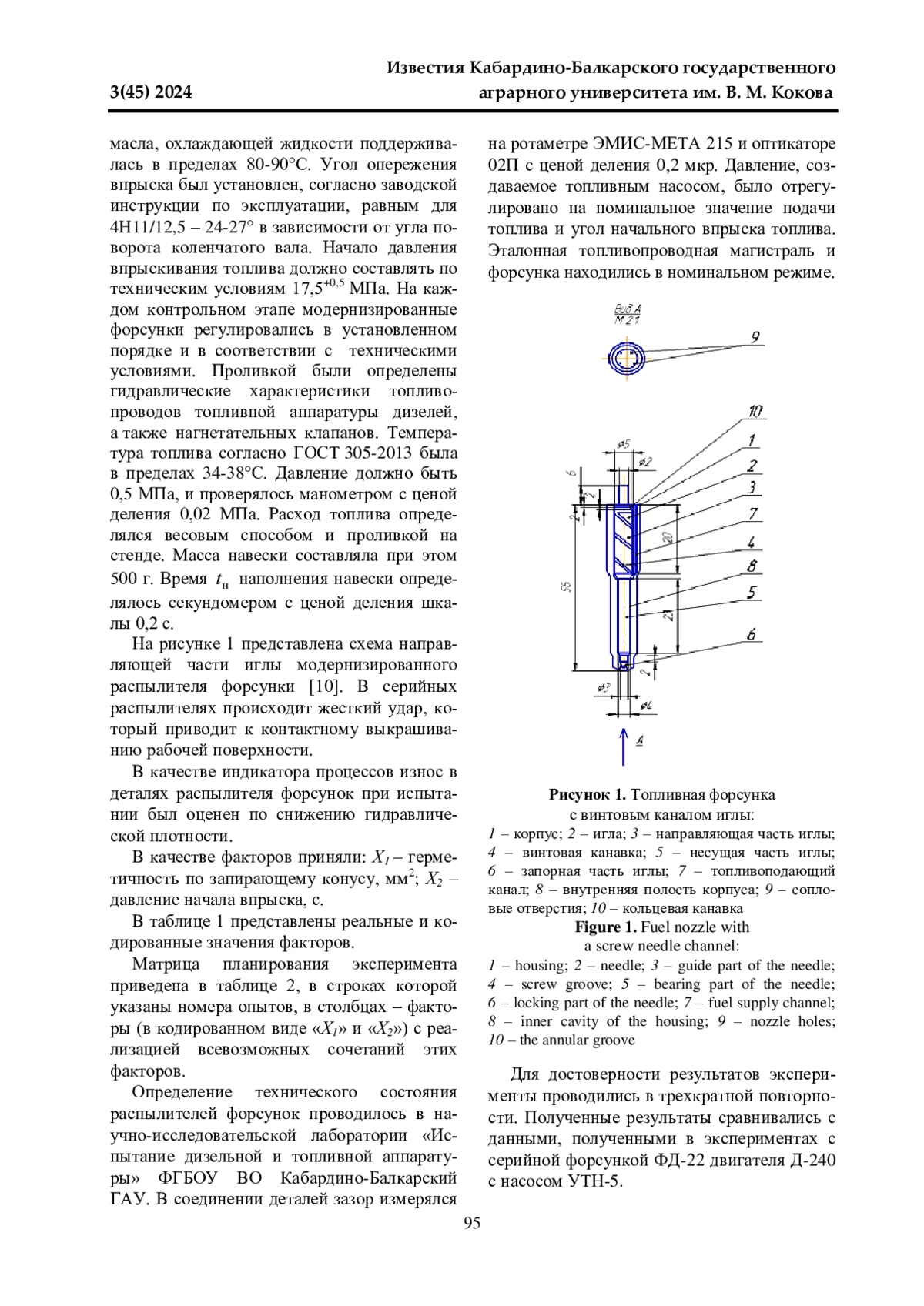 1. 	Гурин Т. Ю. Повышение долговечности форсунок автотракторных дизелей модернизацией распылителей: автореф. дис. … канд. техн. наук. Новосибирск, 2010. 15 с. EDN: QGUKON