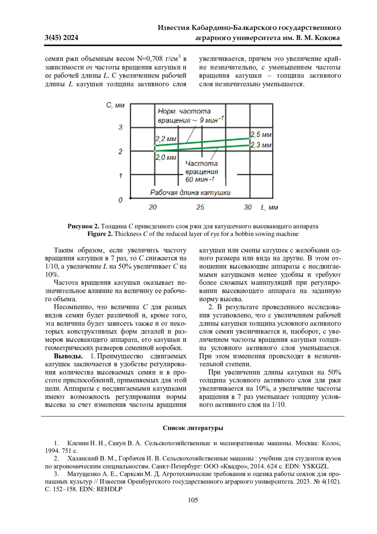 3. Матущенко А. Е., Сарксян М. Д. Агротехнические требования и оценка работы сеялок для пропашных культур // Известия Оренбургского государственного аграрного университета. 2023. № 4(102). С. 152-158. EDN: REHDLP