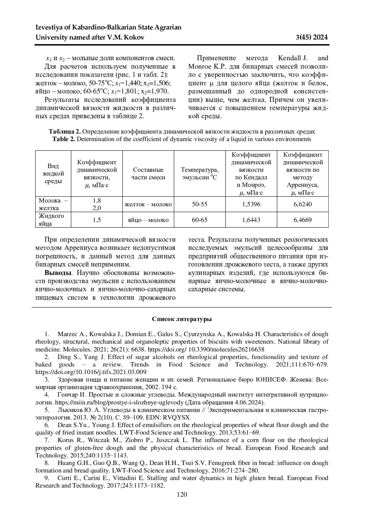 7. 	Korus R., Witczak M., Ziobro P., Juszczak L. The influence of a corn flour on the rheological properties of gluten-free dough and the physical characteristics of bread. European Food Research and Technology. 2015;240:1135-1143. EDN: MBXNME