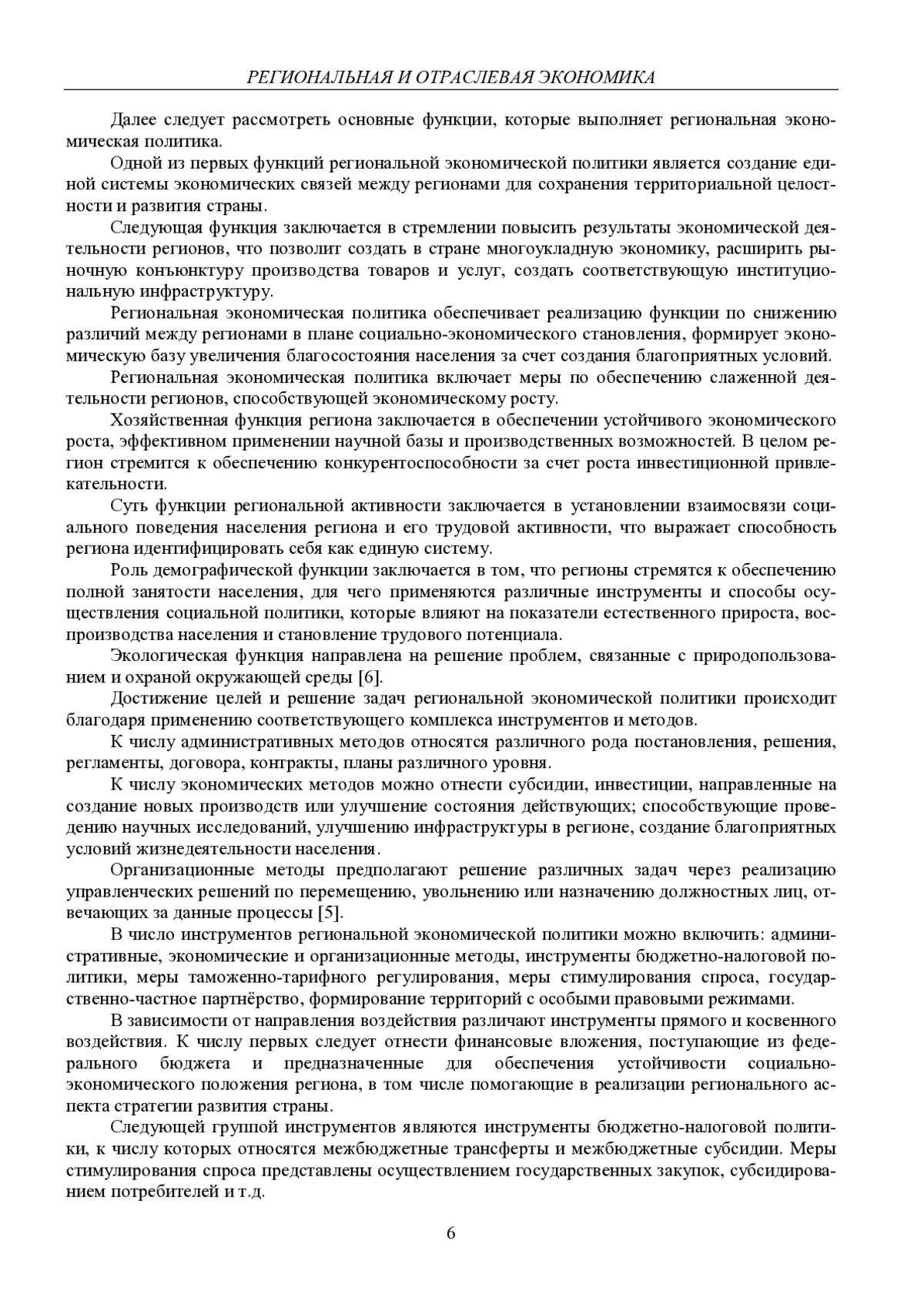 Текущие изменения в территориальном аспекте Российской Федерации приводят к необходимости совершенствования государственного регулирования территориального развития, поэтому особое внимание уделяется функциям и инструментам региональной экономической политики. Особенностью Российской Федерации является разнообразие регионов, отличающихся совокупностью различных аспектов (природно-климатические, социально-экономическое положение, географическое, экологическое и т. д.). Современные рыночные отношения в совокупности с экономическим дисбалансом регионов с учетом имеющихся особенностей требуют к себе особого внимания при реализации стратегии развития страны, направленной на устойчивое развитие, основанное на общенациональных целях