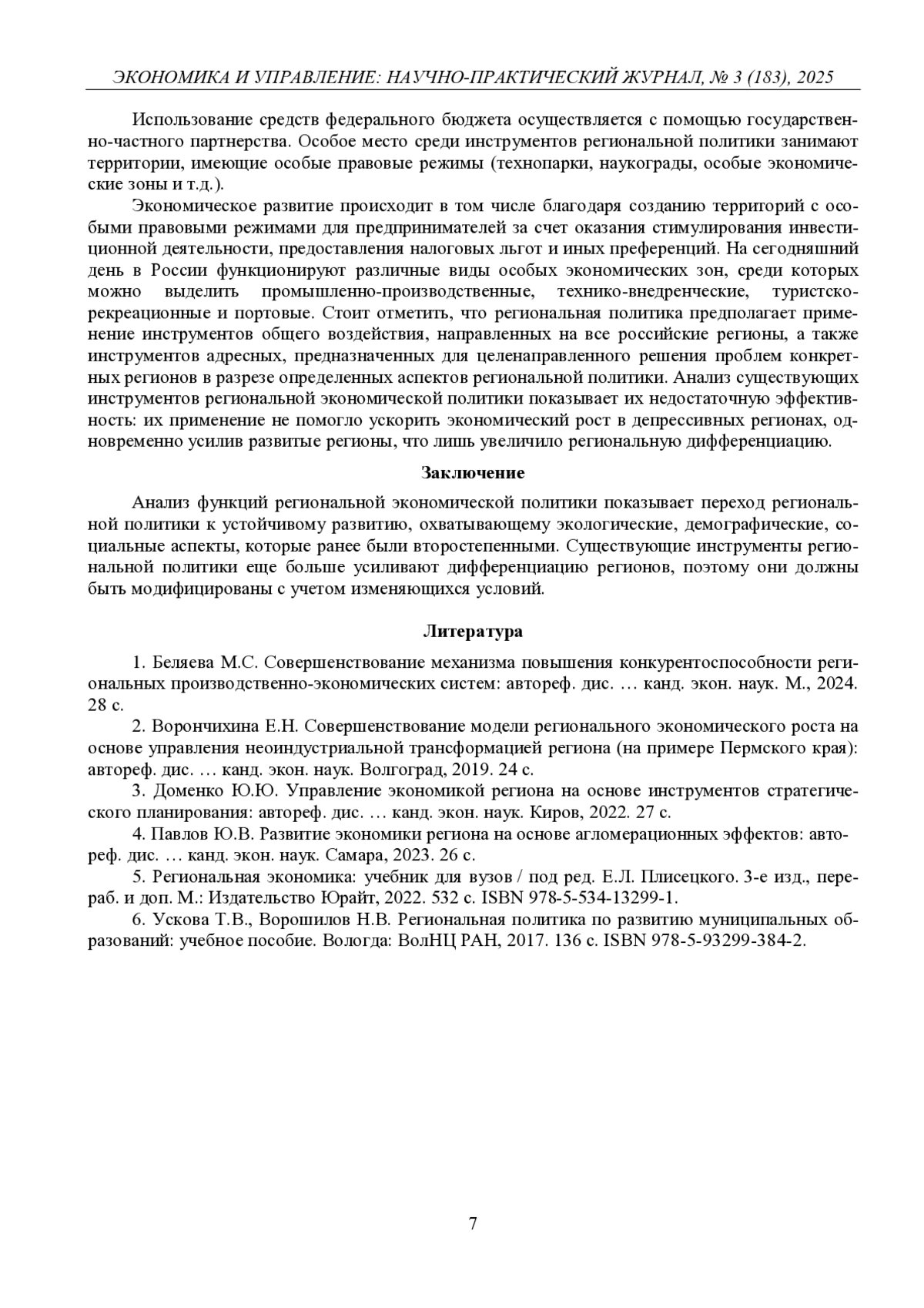 6. Ускова Т.В., Ворошилов Н.В. Региональная политика по развитию муниципальных образований: учебное пособие. Вологда: ВолНЦ РАН, 2017. 136 с. ISBN: 978-5-93299-384-2 EDN: YSHWWM