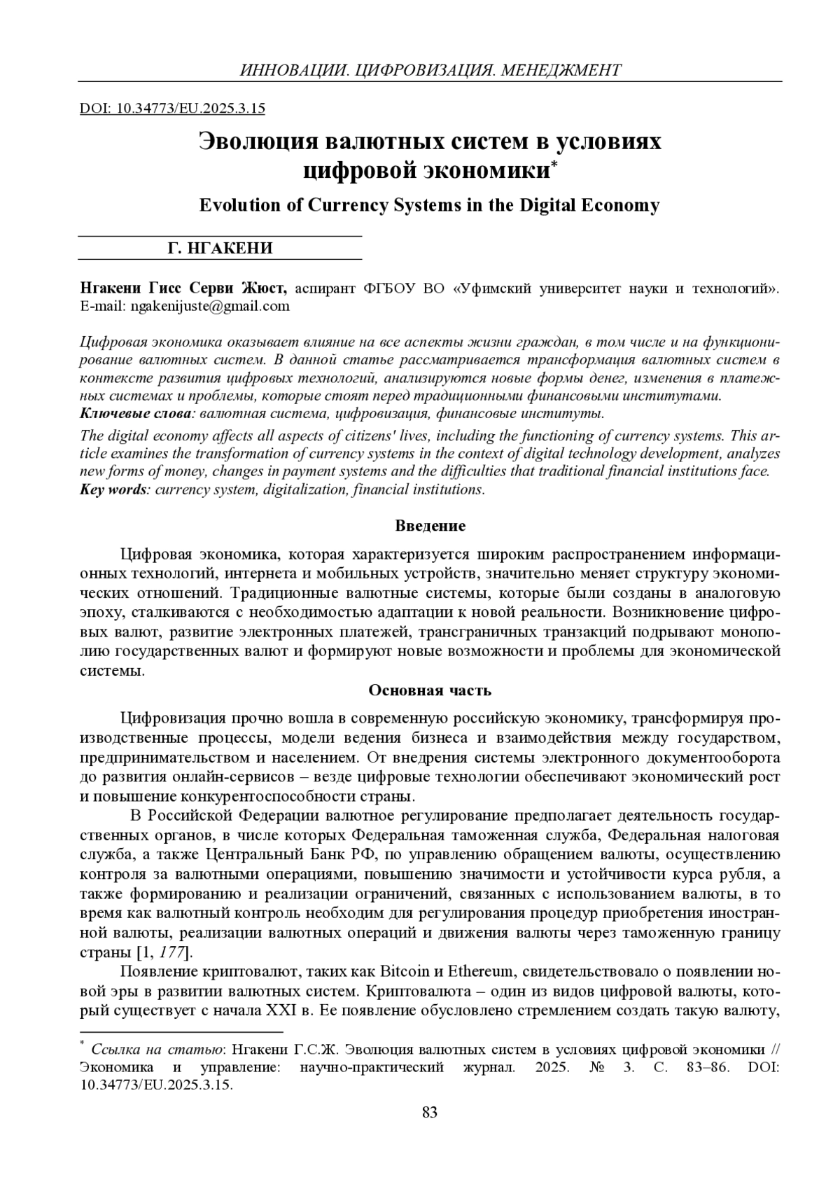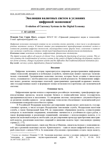 Цифровая экономика оказывает влияние на все аспекты жизни граждан, в том числе и на функционирование валютных систем. В данной статье рассматривается трансформация валютных систем в контексте развития цифровых технологий, анализируются новые формы денег, изменения в платежных системах и проблемы, которые стоят перед традиционными финансовыми институтами