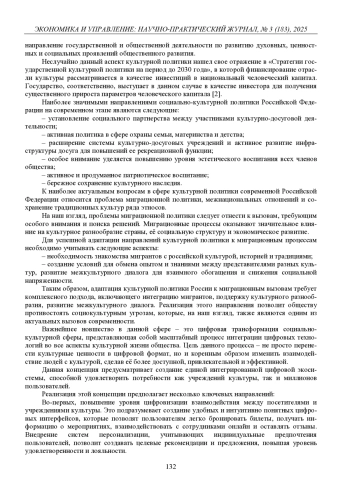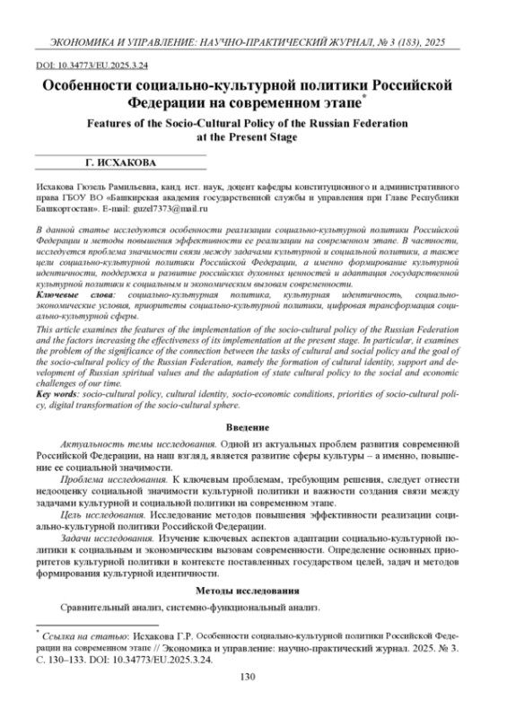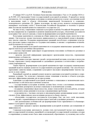 В данной статье исследуются особенности реализации социально-культурной политики Российской Федерации и методы повышения эффективности ее реализации на современном этапе. В частности, исследуется проблема значимости связи между задачами культурной и социальной политики, а также цели социально-культурной политики Российской Федерации, а именно формирование культурной идентичности, поддержка и развитие российских духовных ценностей и адаптация государственной культурной политики к социальным и экономическим вызовам современности
