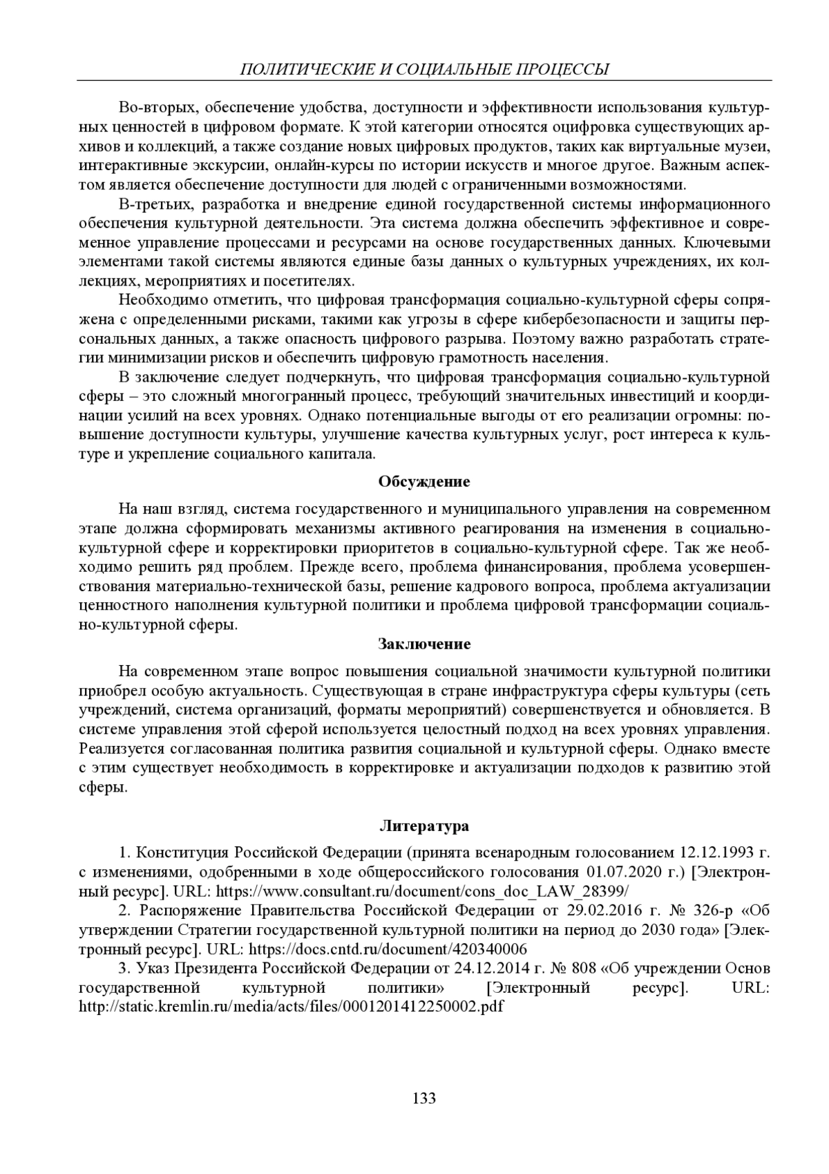 3. 	Указ Президента Российской Федерации от 24.12.2014 г. № 808 “Об учреждении Основ государственной культурной политики” [Электронный ресурс]. URL: http://static.kremlin.ru/media/acts/files/0001201412250002.pdf.