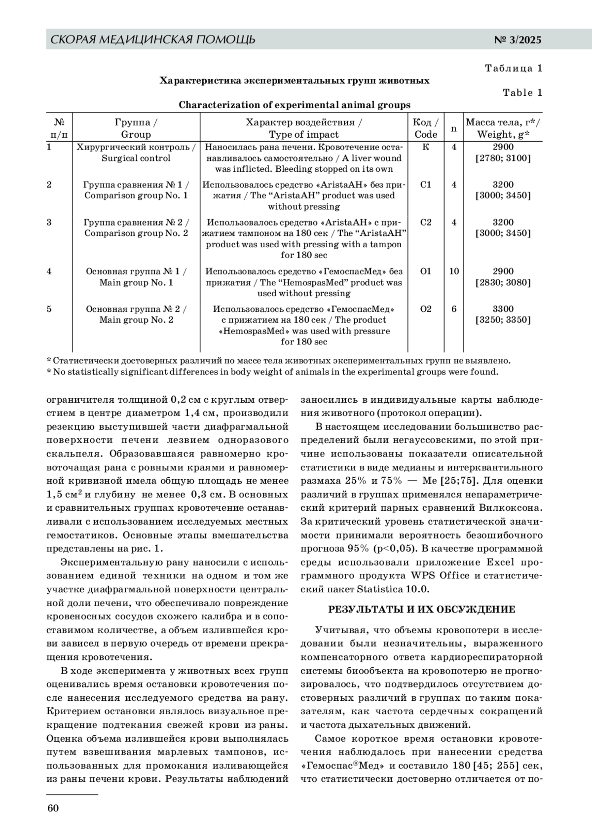 Цель исследования: сравнительная экспериментальная оценка эффективности гемостатического хирургического полисахаридного рассасывающегося средства «Гемоспас®Мед». Для этого на стандартной модели кровотечения из раны печени кролика оценивалось кровоостанавливающее действие средства «Гемоспас®Мед» и объекта сравнения «AristaАН». Материалы и методы исследования. Исследование выполнено в остром эксперименте на биомодели кровотечения из раны печени кролика. Эффективность гемостатиков оценивалась по времени остановки кровотечения и объему излившейся крови, в пересчете на объем ОЦК животного. Результаты. По результатам экспериментальной доклинической апробации эффективность «Гемостатического хирургического полисахаридного рассасывающего средства «Гемоспас®Мед», разработанного в рамках импортозамещения, сопоставима с зарубежным образцом кровеостанавливающего средства на основе модифицированного крахмала. Заключение. По эффективности местное гемостатическое средство «Гемоспас®Мед» не уступает своему зарубежному аналогу и может с успехом заменить его в практике хирургии неотложных состояний как дополнение к классическим методам хирургического гемостаза при операциях на органах брюшной полости и забрюшинного пространства.