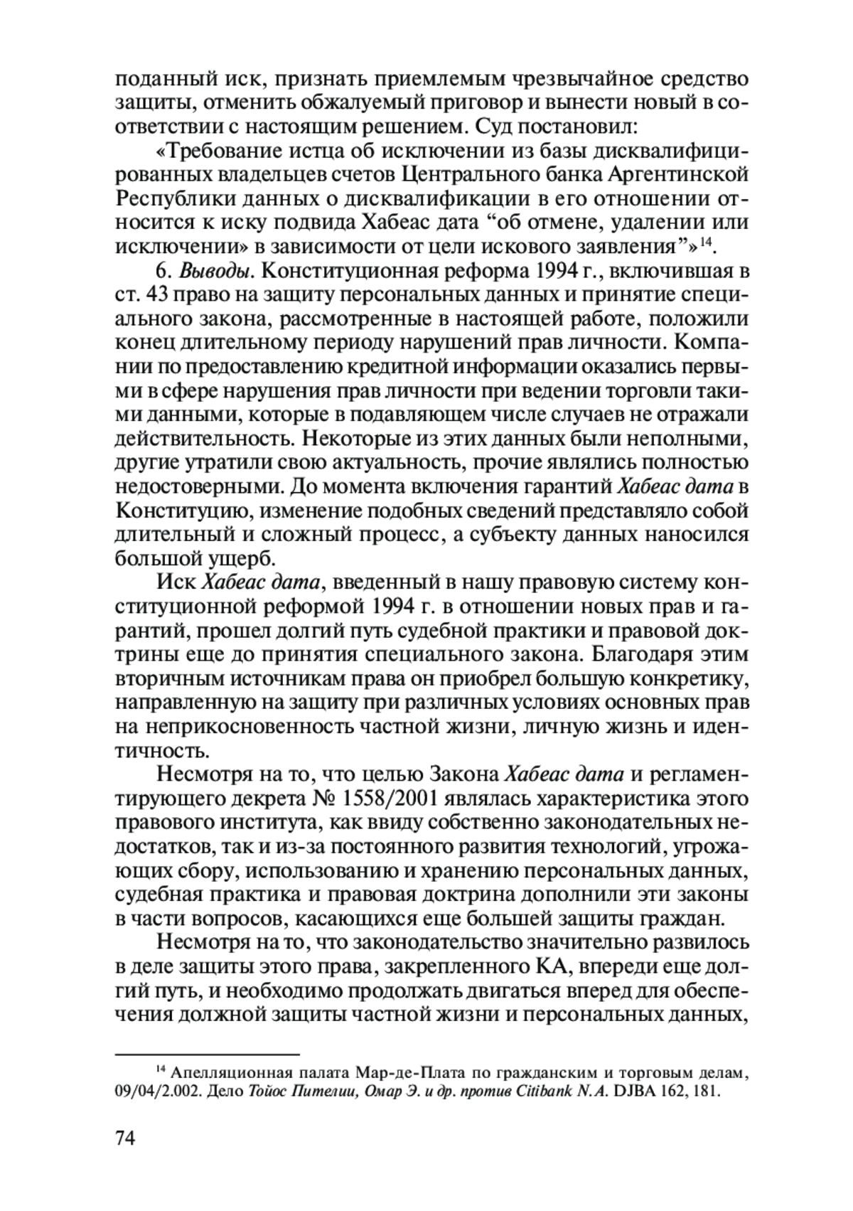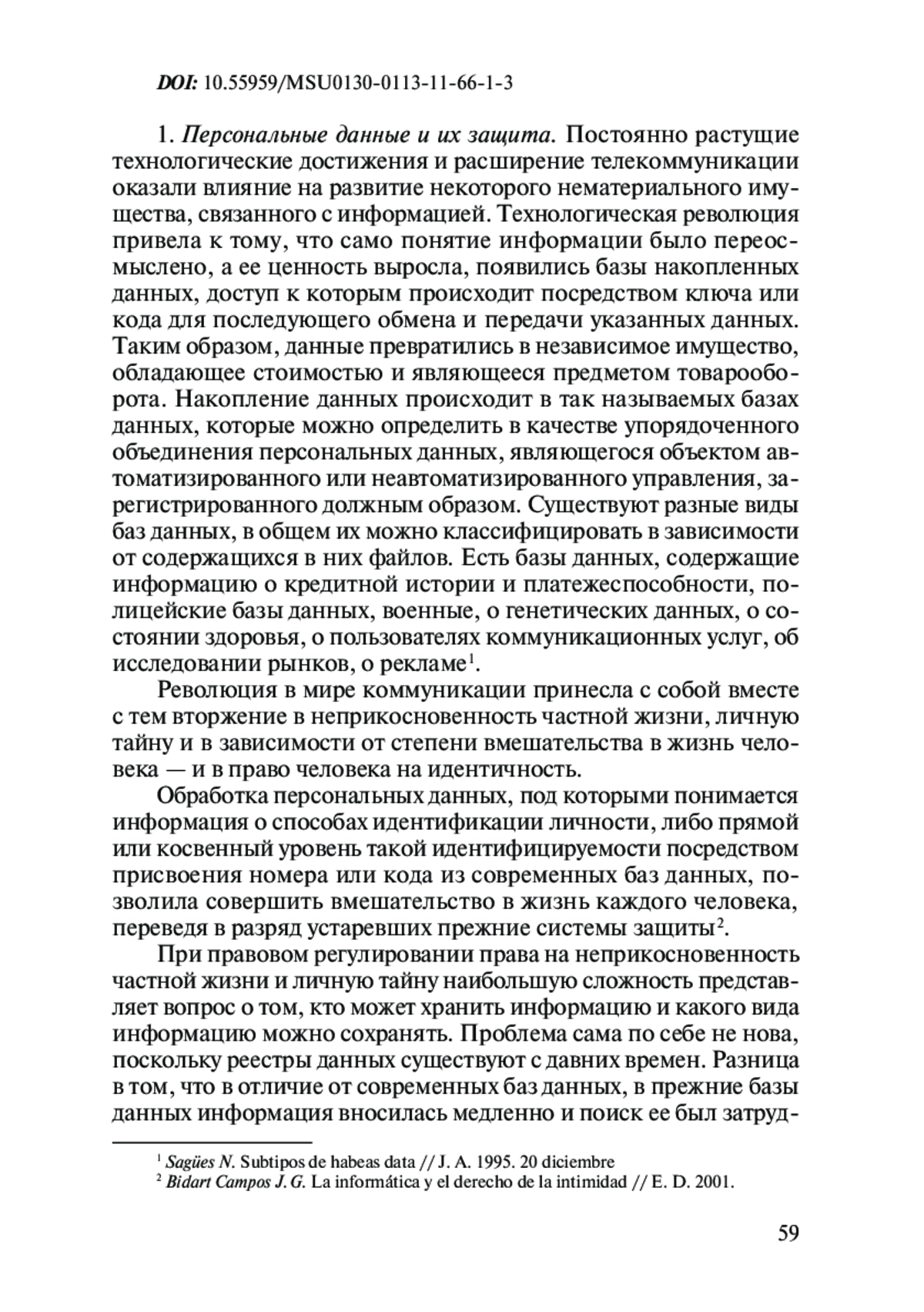 3. 	Peyrano G. F. Régimen legal de los datos personales y hábeas data. Buenos Aires, 2002.