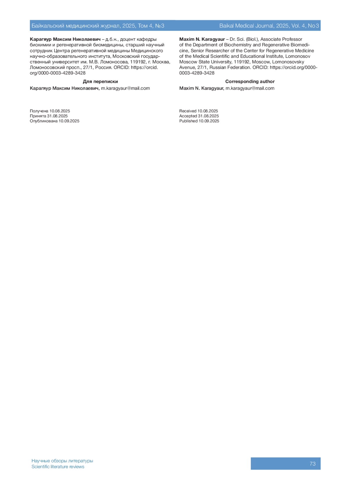 57. 	Dzhauari S.S., Primak A.L., Basalova N.A. et al. Overexpression of BDNF and uPA combined with the suppression of Von Hippel-Lindau tumor suppressor enhances the neuroprotective activity of the secretome of human mesenchymal stromal cells in the model of intracerebral hemorrhage. Int J Mol Sci. 2025;26(14):6697.