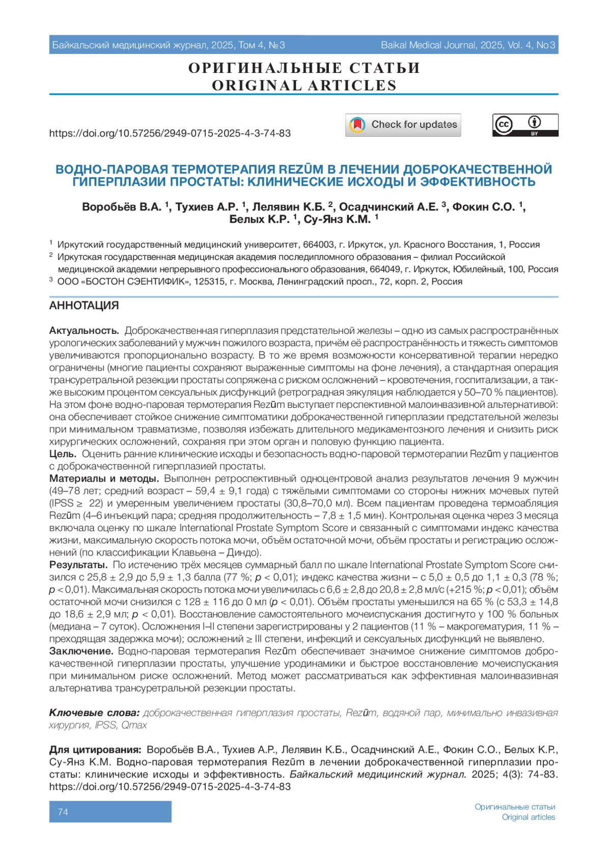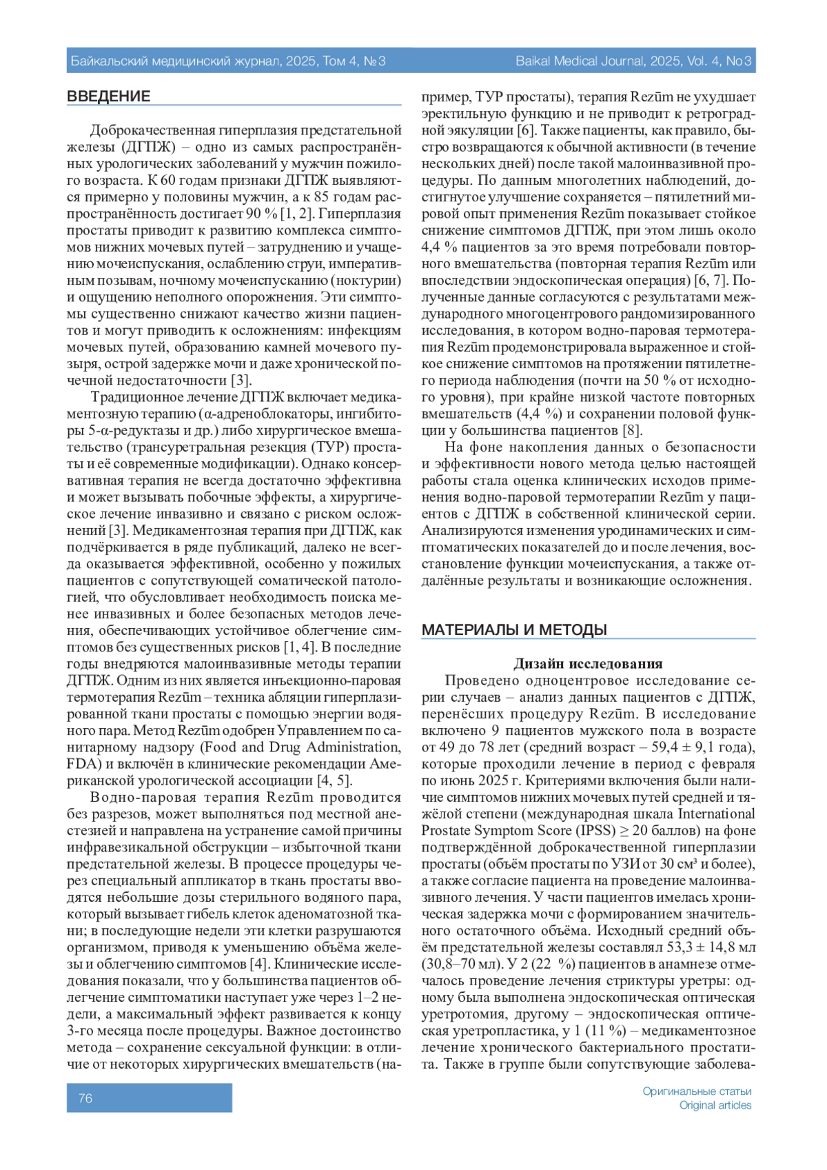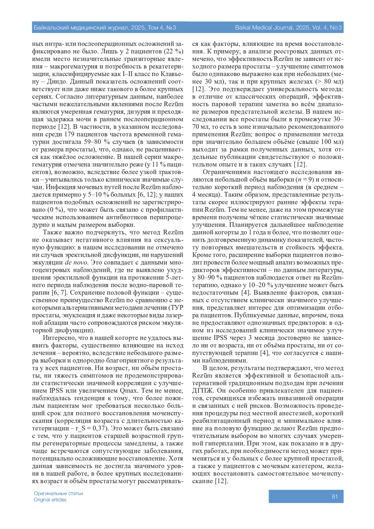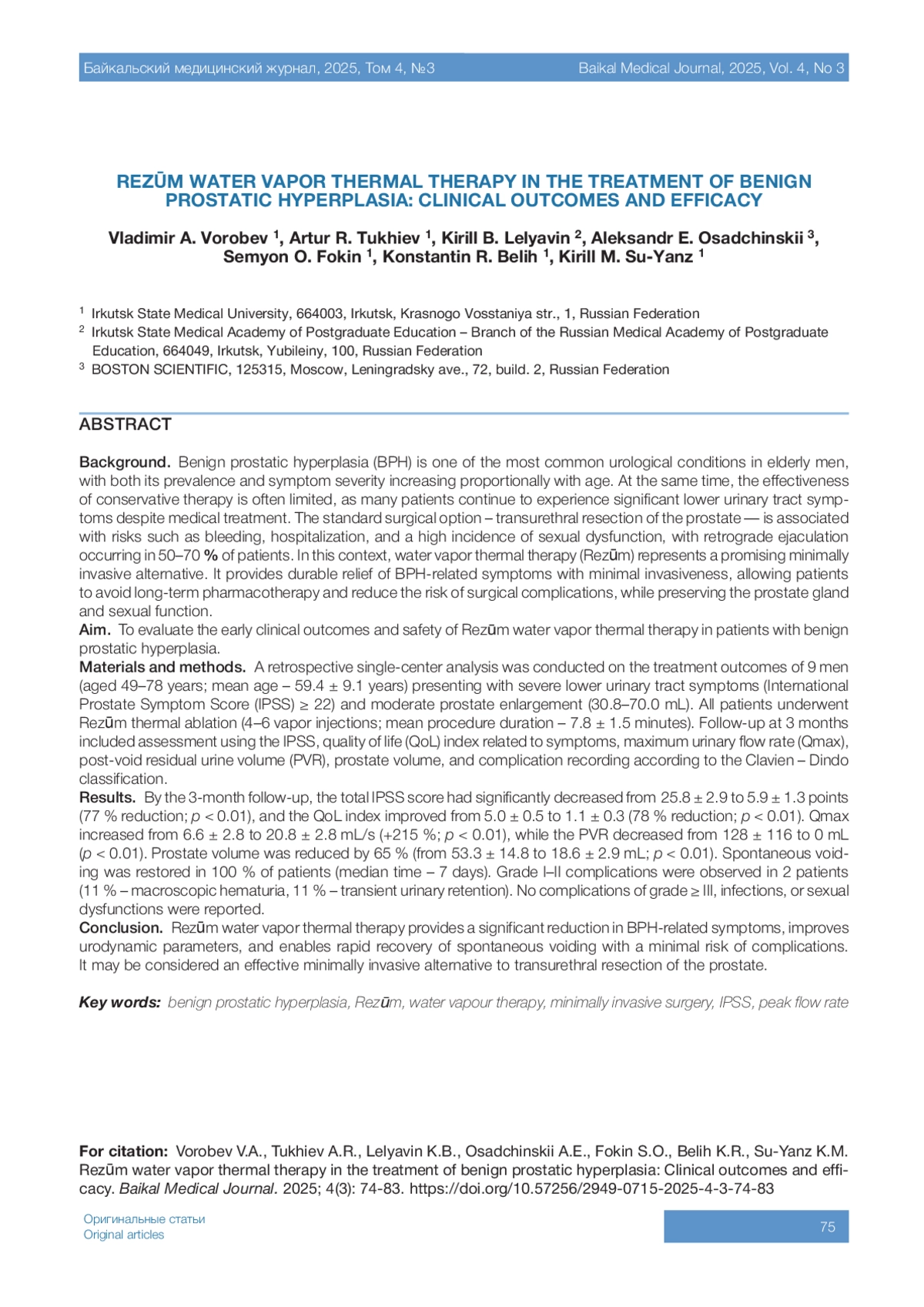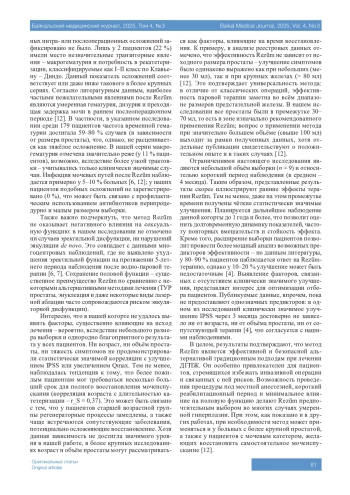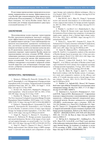 6. 	Yang Y.J., Yang E.J., Nguyen T.T., Kato T., Choi S.Y. Which improvements does Rezum bring to BPH management? A network meta-analysis and comparison of water vapor therapy and conduction ablation techniques. Minerva Urol Nephrol. 2025;77(2):171-180. DOI: 10.23736/S2724-6051.25.06109-9