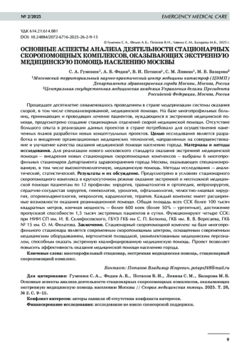 5. Мирошниченко А.Г., Стожаров В. В., Алимов Р. Р., Москвин В. А. Критерии оценки качества скорой и специализированной медицинской помощи в экстренной форме в стационарных условиях // Скорая медицинская помощь. 2019. № 1. С. 4-11.