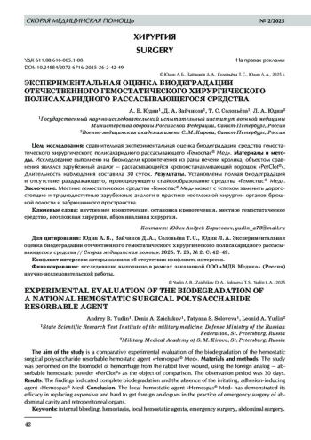 Gain Yu.M., Aleksandrova O. S., Gapanovich V. N. Modern methods of local hemostasis in damage to parenchymatous abdominal organs. Surgery News, 2009, Vol. 17, No. 4, рр. 160-171 (In Russ.).