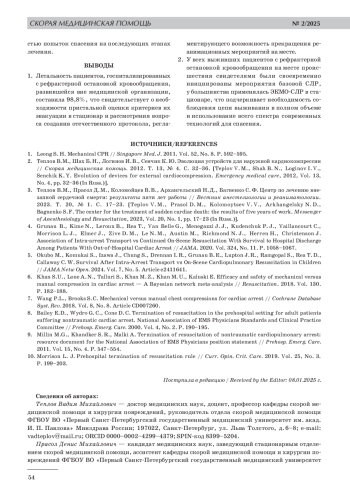Teplov V. M., Prasol D. M., Kolomoytsev V. V., Arkhangelsky N. D., Bagnenko S. F. The center for the treatment of sudden cardiac death: the results of five years of work. Messenger of Anesthesiology and Resuscitation, 2023, Vol. 20, No. 1, рр. 17-23 (In Russ.).
