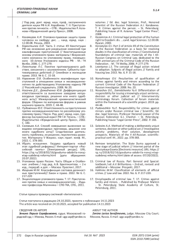 Encyclopedia of criminal law. T. 17. Crimes against family and minors. - Published by Professor Malinin - St. Petersburg State Academy of Culture, St. Petersburg, 2011.