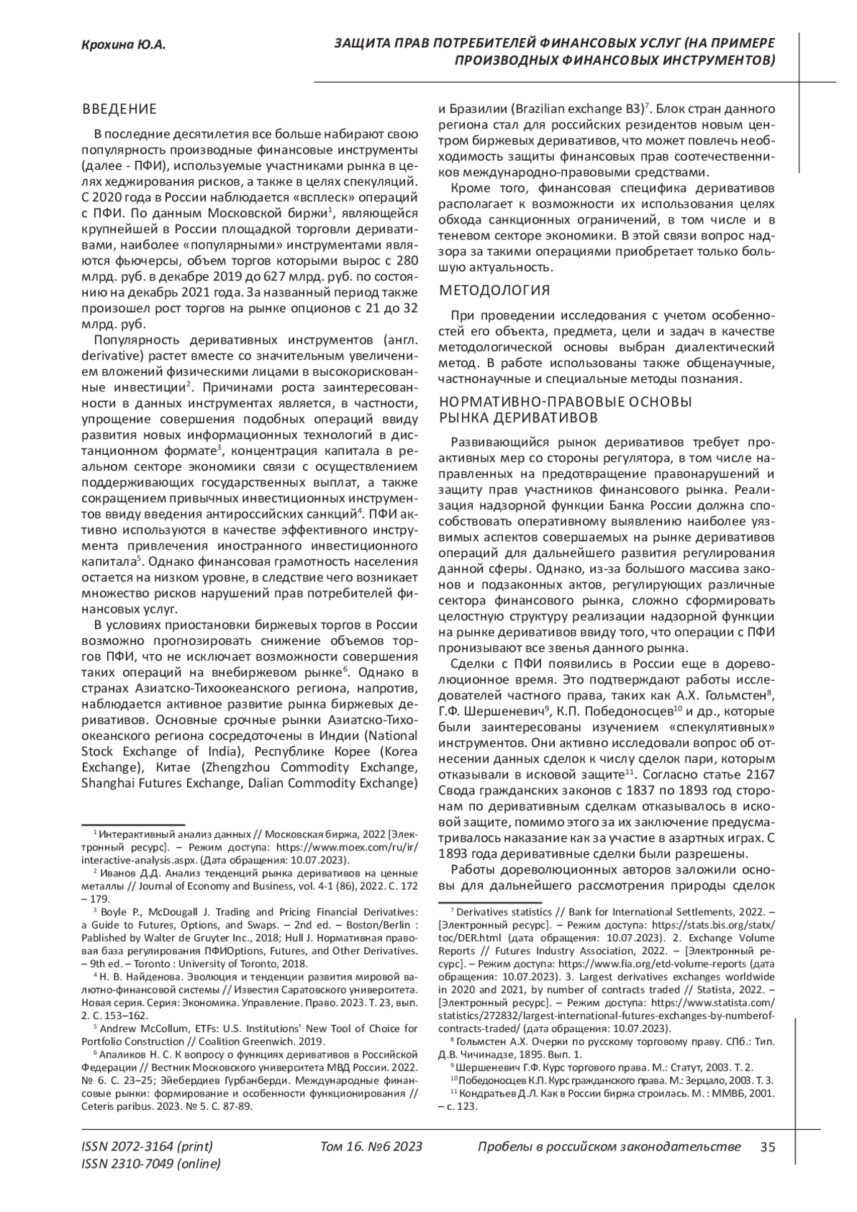 6. 	Апаликов Н. С. К вопросу о функциях деривативов в Российской Федерации // Вестник Московского университета МВД России. 2022. № 6. С. 23-25. EDN: AHDRXD