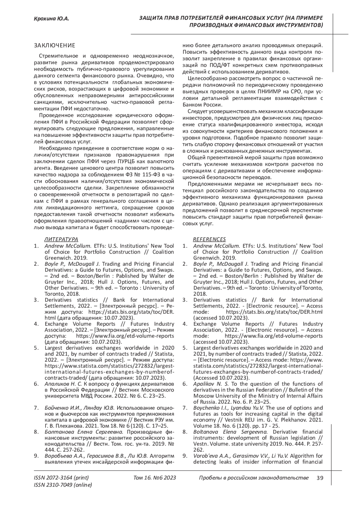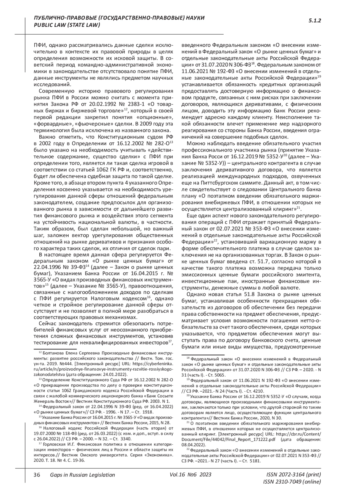 8. 	Болтанова Елена Сергеевна. Производные финансовые инструменты: развитие российского законодательства // Вестн. Том. гос. ун-та. 2019. № 444. С. 257-262.