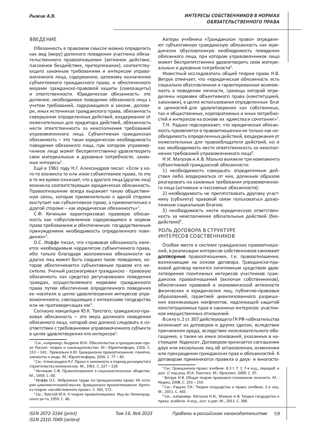 1. Андреев Ю.Н. Обязательства в гражданском праве России: теория и законодательство. М.: Юрлитинформ, 2016. С. 132 - 141. EDN: VCRDHT