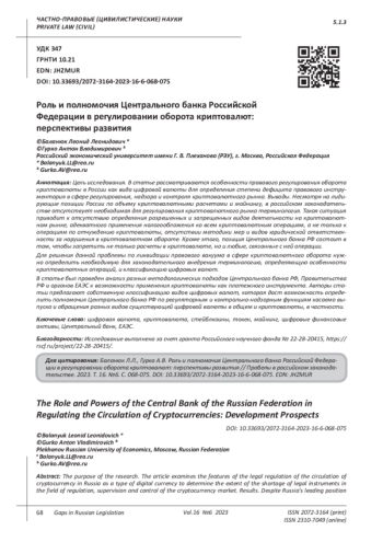 12. Рождественская Т.Э., Гузнов А.Г. Цифровая валюта: особенности регулирования в Российской Федерации // Правоприменение. 2021. Т. 5. № 1. C. 58-67. EDN: USDWVE