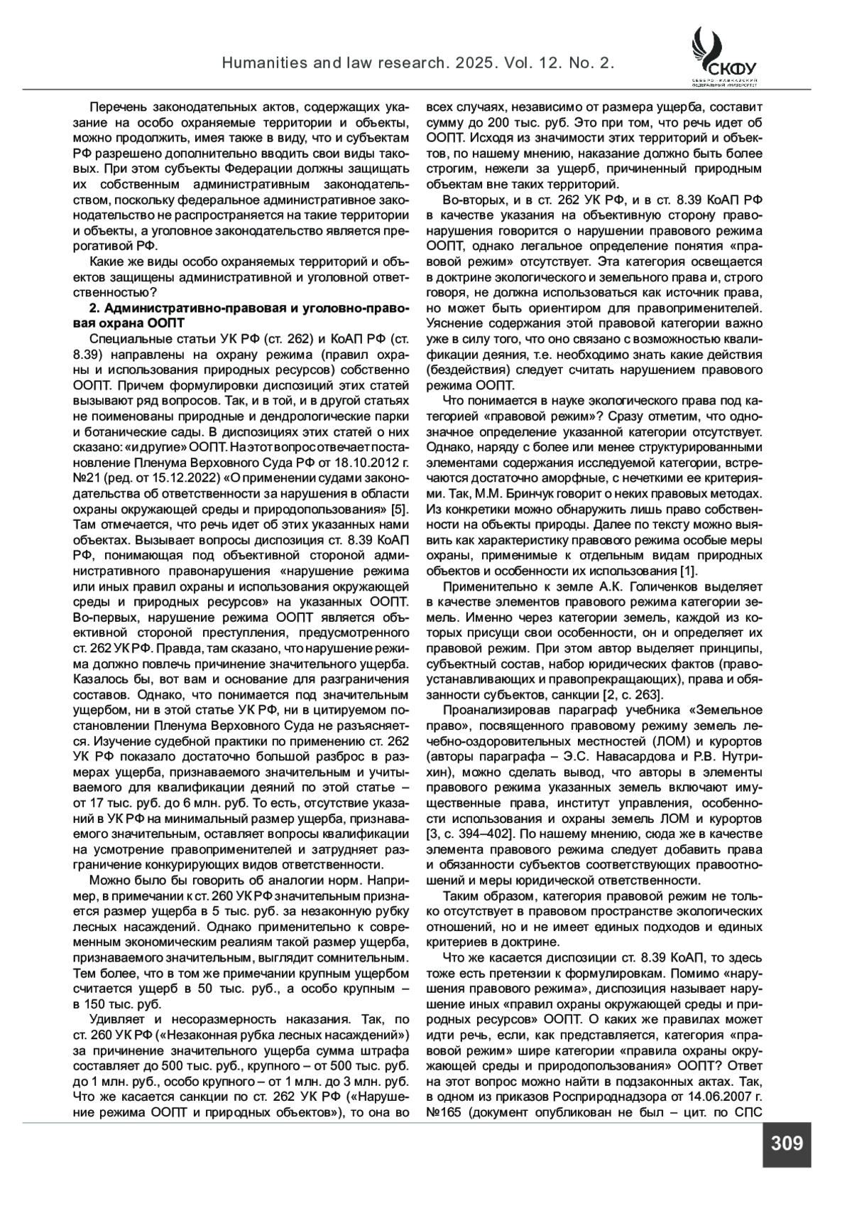 5. Постановление Пленума Верховного Суда РФ от 18.10.2012 N 21 (ред. от 15.12.2022) «О применении судами законодательства об ответственности за нарушения в области охраны окружающей среды и природопользования» // СПС «КонсультантПлюс». URL: https://www.consultant.ru/document/cons_doc_LAW_136950 (дата обращения: 15.01.2025).