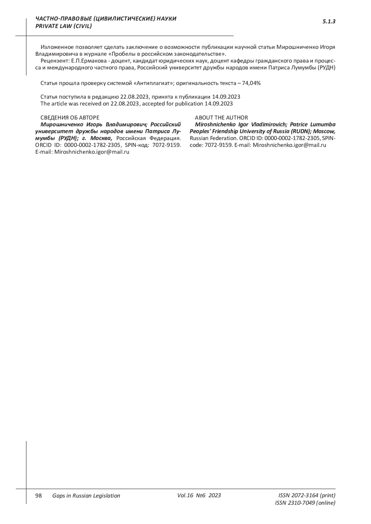 12. 	Кирсанов А.Н. Системные проблемы гармонизации корпоративного законодательства // Право и менеджмент. XXI век. 2018. № 2 (47). С. 40-47.
