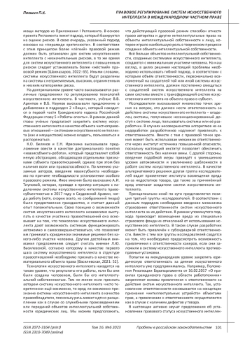 6. 	Шахназаров Б.А. Правовое регулирование отношений с использованием искусственного интеллекта // Актуальные проблемы российского права. 2022. № 9 (142). С. 63-72. EDN: YOWNJO
