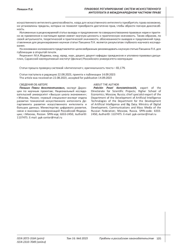 Shakhnazarov B.A. Legal regulation of relations using artificial intelligence // Aktual’nyye problemy rossiyskogo prava. 2022. No. 9 (142). P. 63-72.
