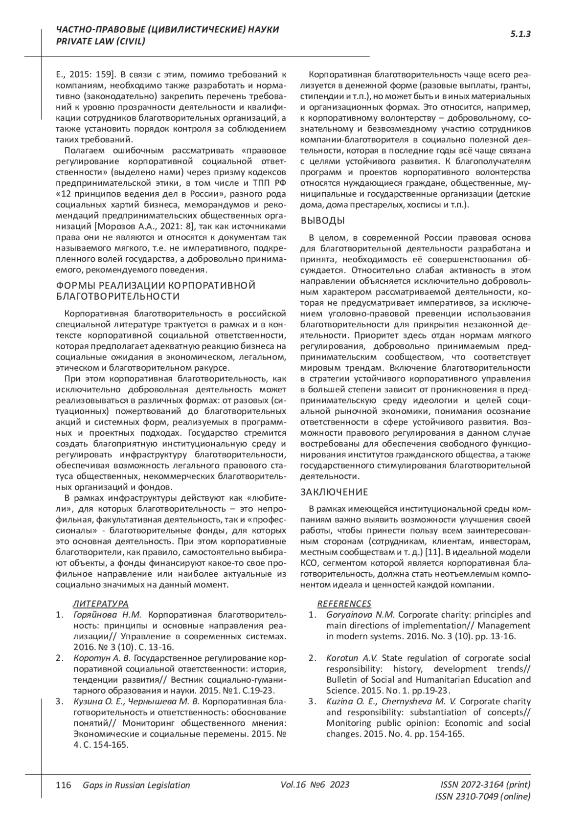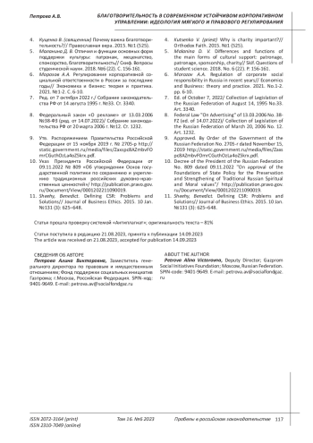 6. 	Морозов А.А. Регулирование корпоративной социальной ответственности в России за последние годы// Экономика и бизнес: теория и практика. 2021. №1-2. С. 6-10. EDN: KUEWMJ