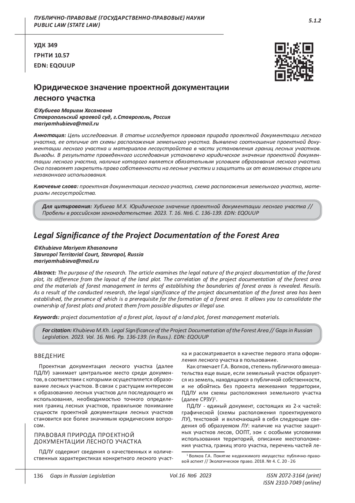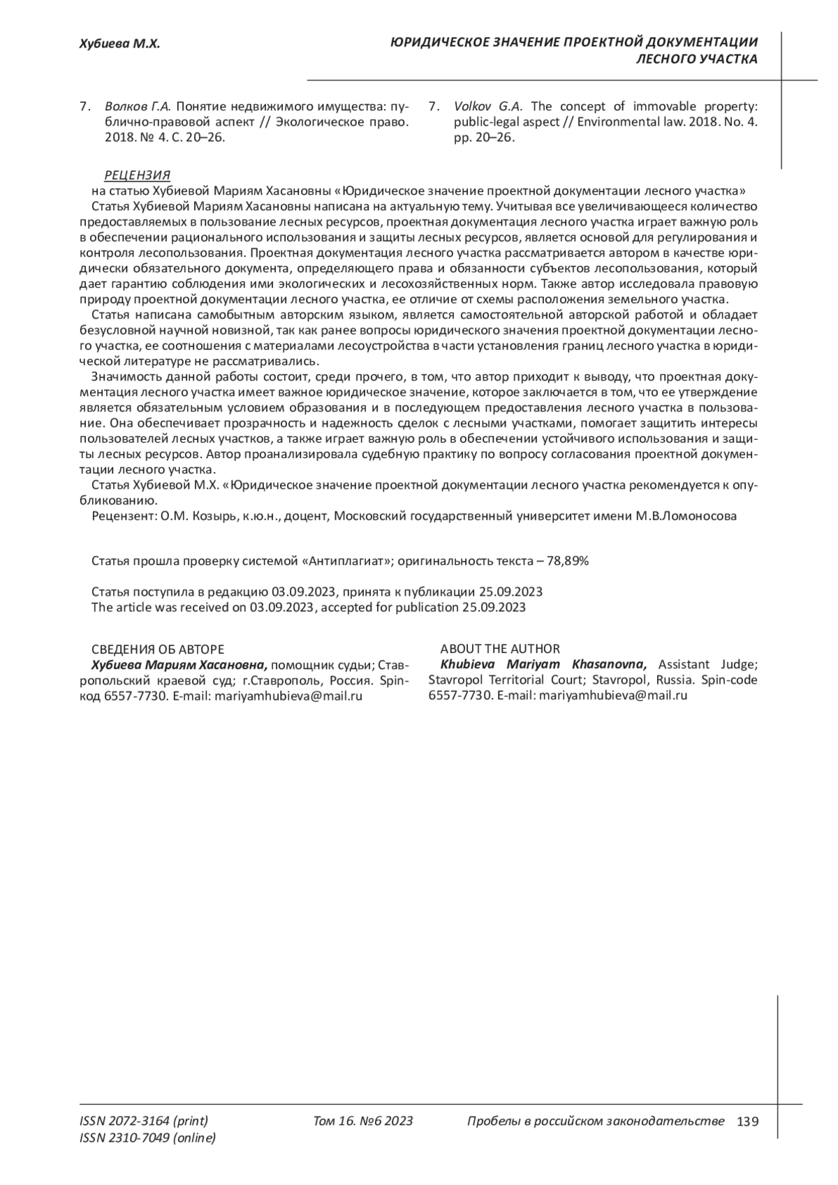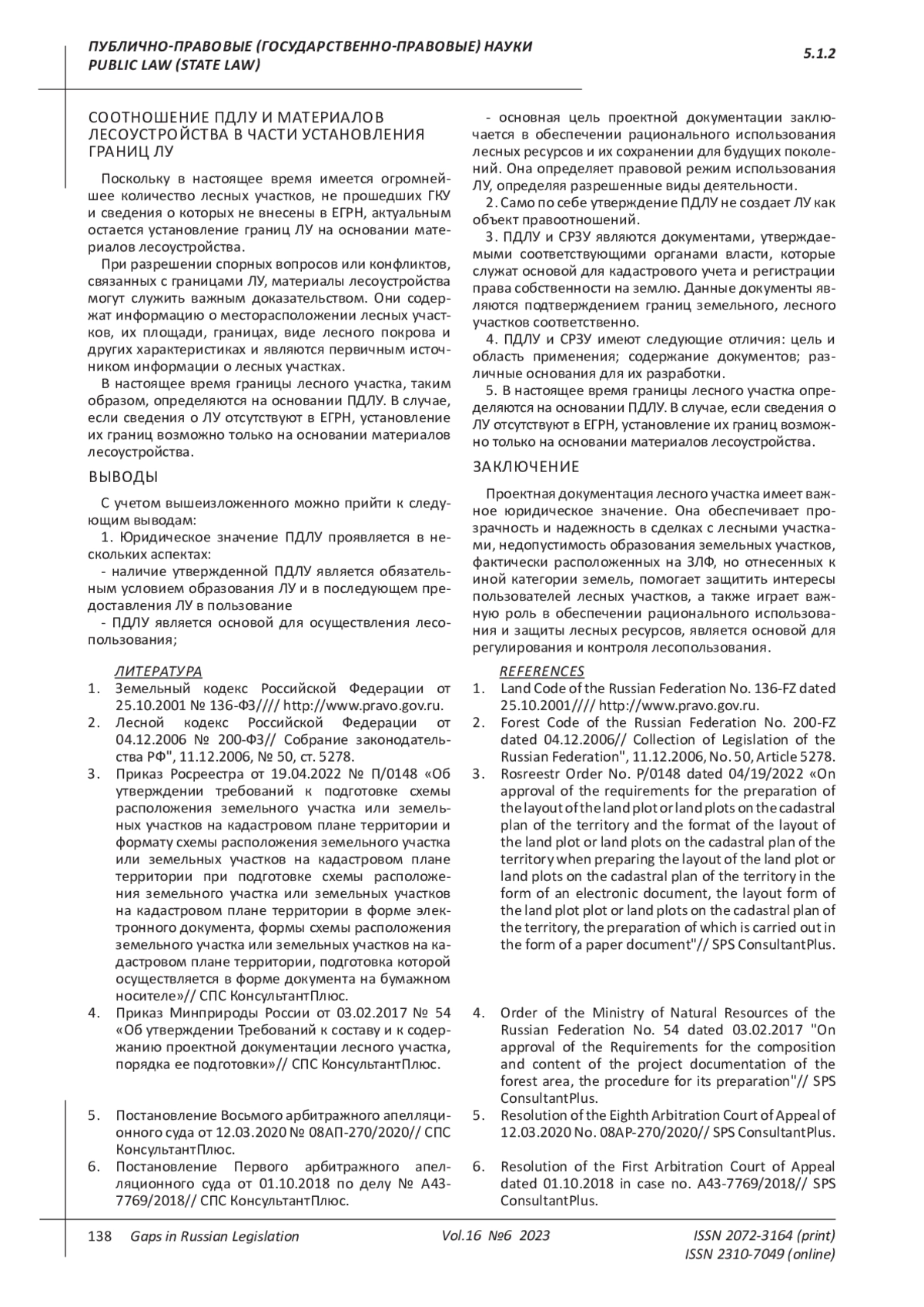 7. 	Волков Г.А. Понятие недвижимого имущества: публично-правовой аспект // Экологическое право. 2018. № 4. С. 20-26. EDN: XYNJFR