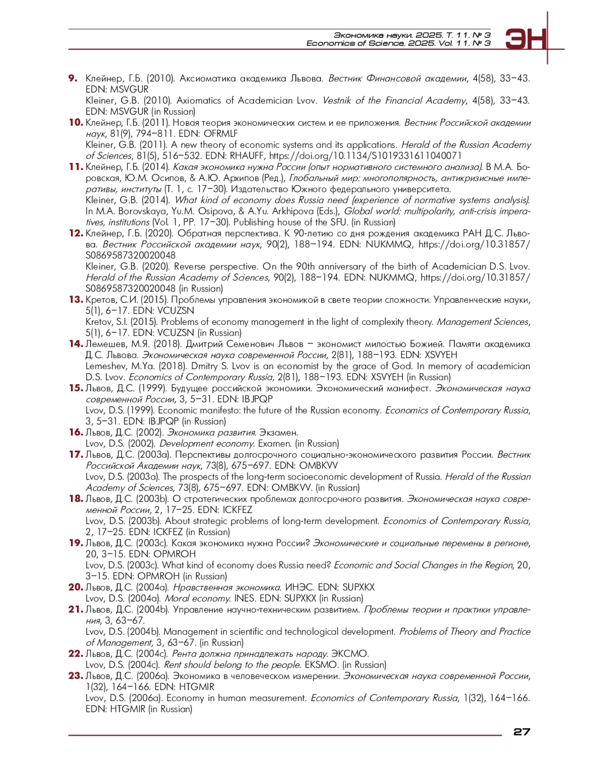 12. Клейнер, Г.Б. (2020). Обратная перспектива. К 90-летию со дня рождения академика РАН Д. С. Львова. Вестник Российской академии наук, 90(2), 188-194. EDN: NUKMMQ, https://doi.org/10.31857/S0869587320020048