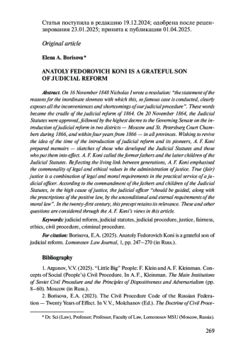 5. 	Васильев О. Л. Мысли А. Ф. Кони о нравственных началах уголовного процесса: исторический анахронизм или ориентир для реформ? // Вестн. Моск. ун-та. Сер. Право. 2019. № 2. С. 104-116.