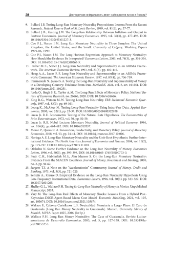 22. Noriega A.E. Long-Run Monetary Neutrality and the Unit-Root Hypothesis: Further International Evidence //The North American Journal of Economics and Finance. 2004. Vol. 15(2). P. 179-197. https://doi.org/10.1016/j.najef.2003.11.003.