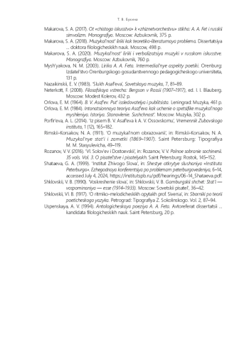 28. Макарова С. А. Музыкальность лирики и вербализация музыки в русском искусстве. М.: Азбуковник, 2020. 760 с.
