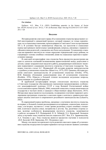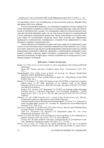 10. 	Леканова Е.Е. Презумпция отцовства в советском праве // Вестник Ярославского государственного университета им. П.Г. Демидова. Серия: Гуманитарные науки. 2022. № 16(1). С. 100-109. DOI: 10.18255/1996-5648-2022-1-100-109 EDN: NYBXKQ