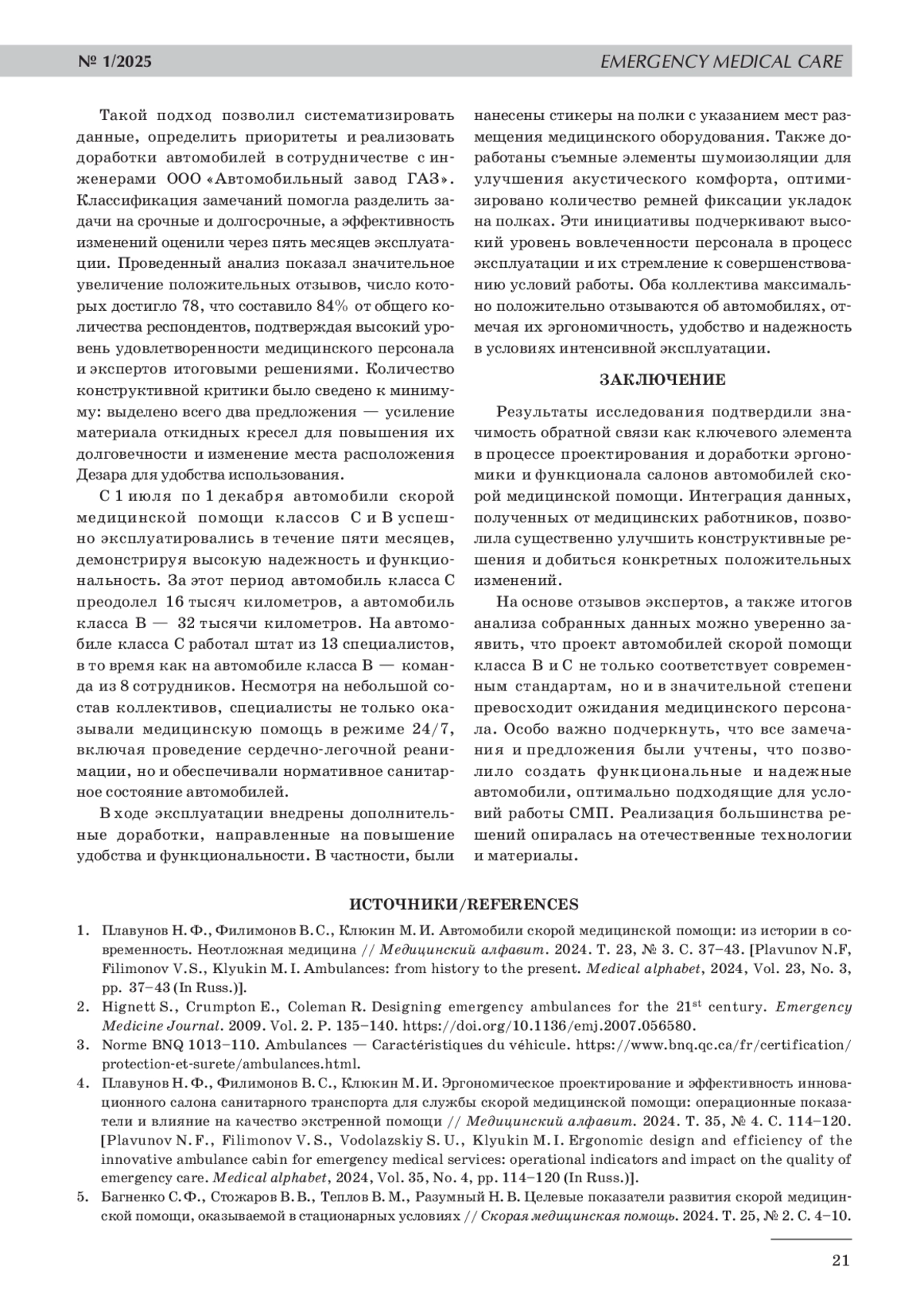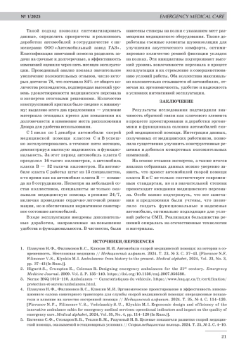 2. 	Hignett S., Crumpton E., Coleman R. Designing emergency ambulances for the 21st century. Emergency Medicine Journal. 2009. Vol. 2. Р. 135-140. DOI: 10.1136/emj.2007.056580