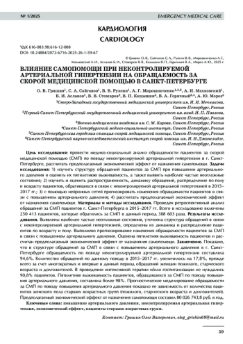 Ruksin V. V., Grishin O. V., Miroshnichenko A. G. Self-help in uncontrolled arterial hypertension. Emergency medical care, 2021, Vol. 22, No. 3, рр. 4-11 (In Russ.).