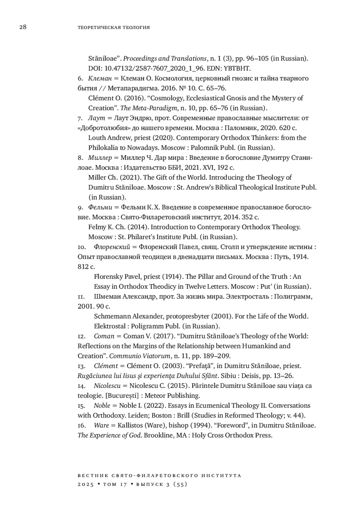 6. 	Клеман О. Космология, церковный гнозис и тайна тварного бытия // Метапарадигма. 2016. № 10. С. 65-76.