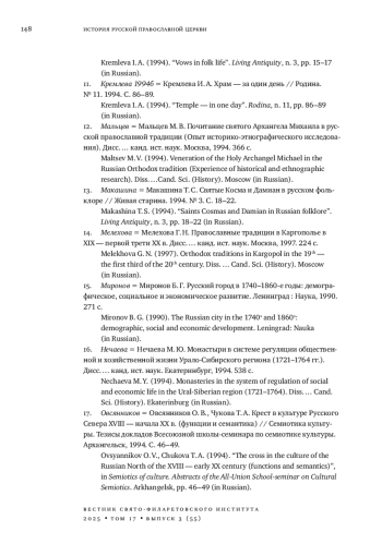 21. 	Мелехова Г. Н. Православные традиции в Каргополье в XIX - первой трети XX в. Дисс. … канд. ист. наук. Москва, 1997. 224 с. EDN: ZLDJXD